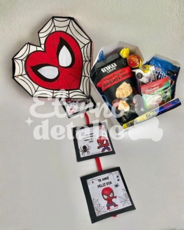 Contenido: Caja corazón decorada, acordeón de frases, 1 Inka Chips, 1 Bon o Bon, 1 Chips Ahoy, 1 Obsesión, 1 Tuyo, 1 gomitas y 3 fotos polaroid.